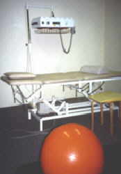 und Gerätewagen mit Ultraschall und Elektrotherapie.